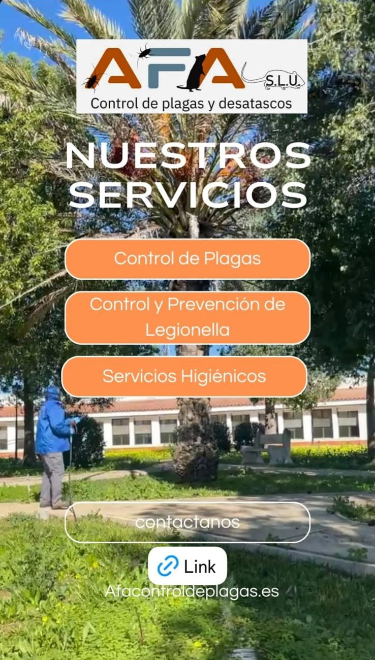 AFA Control de Plagas cuenta con un equipo altamente cualificado para realizar estos servicios en cuanto a formación, experiencia y atribuciones profesionales, nuestro trabajo va más allá de realizar un “tratamiento”, nosotros realizamos un control íntegro de plagas. Realizamos tratamientos tanto a empresas como a particulares, hacemos presupuestos sin compromiso, controlamos cualquier tipo de plaga. Algunos de nuestros clientes: organismos públicos; empresas agroindustriales; empresas de restauración; museos; trabajos agrícolas;  industrias; particulares.